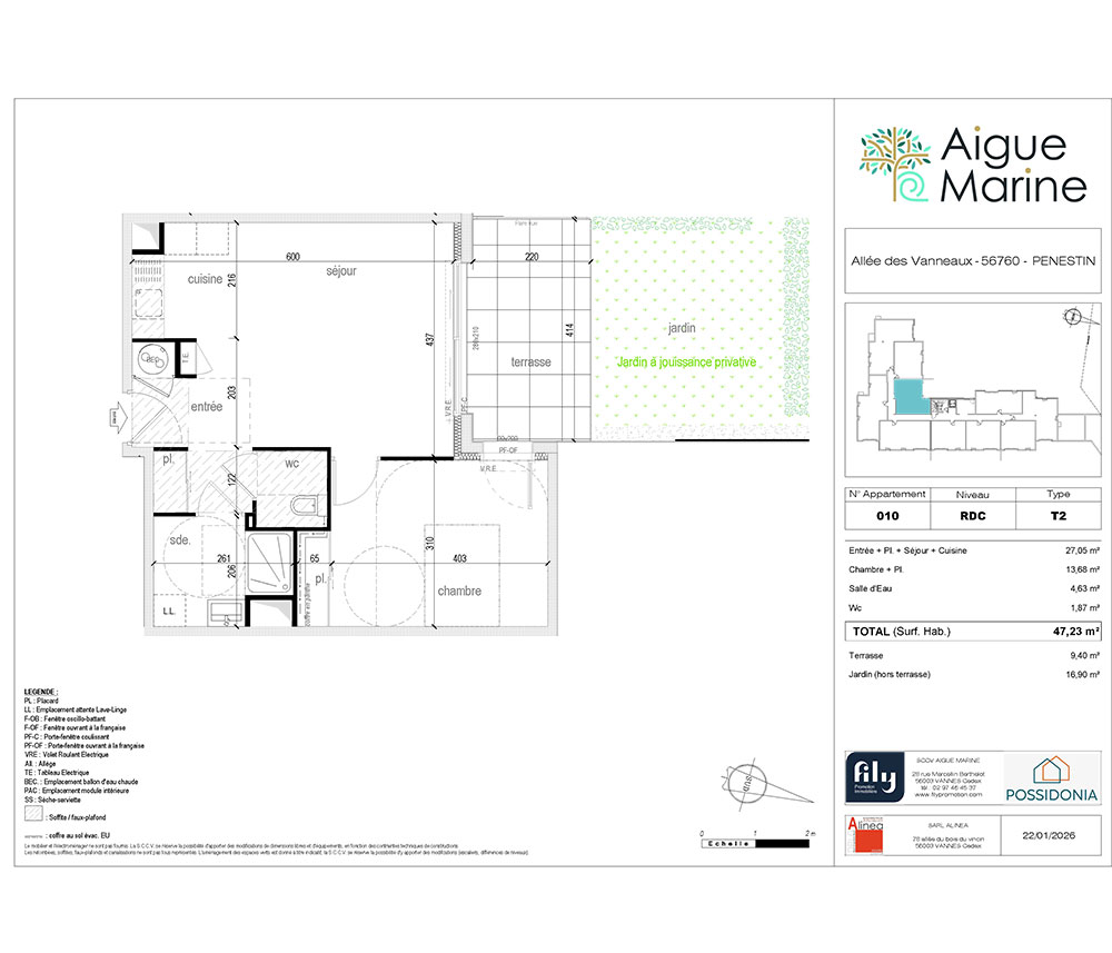 Vous souhaitez vous installer dans un cadre idyllique ou investir dans l’immobilier neuf en bord de mer en Bretagne ? Aigue-Marine est une chance unique d’acquérir un bien dans une résidence pensée pour vous offrir confort et bien-être tout au long de l’année. Nichée entre mer et nature, Aigue-Marine est idéalement située à Pénestin, au sud du Morbihan. Cette station balnéaire et son environnement naturel d’exception vous invitent à la découverte du célèbre site de la Mine d’Or avec ses falaises ocre ou encore du charmant port de Tréhiguier. Ici, les amateurs de nature, de randonnées et de plaisirs nautiques trouvent leur bonheur tout au long de l’année. Une atmosphère de vacances que vous pouvez prolonger en investissant dans un appartement neuf à Pénestin. Le programme Aigue Marine vous propose 28 appartements, du 2 pièces au 4 pièces, livrés clé en main, avec peintures faites et revêtements de sol posés. Que vous soyez à la recherche d’un appartement neuf à Pénestin pour y vivre à l’année ou pour profiter de la douceur des vacances, chaque logement a été conçu avec soin. Située dans un quartier résidentiel calme, à deux pas de la plage, cette résidence se distingue par ses lignes architecturales modernes et élégantes qui respectent le charme breton. Vous souhaitez en savoir plus sur ce programme immobilier dans le Morbihan ? Contactez dès maintenant l’équipe Fily Promotion afin d’être accompagné dans votre projet d’achat d’appartement à Pénestin, que ce soit pour une résidence principale ou un investissement locatif.