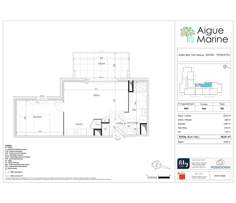 Vous souhaitez vous installer dans un cadre idyllique ou investir dans l’immobilier neuf en bord de mer en Bretagne ? Aigue-Marine est une chance unique d’acquérir un bien dans une résidence pensée pour vous offrir confort et bien-être tout au long de l’année. Nichée entre mer et nature, Aigue-Marine est idéalement située à Pénestin, au sud du Morbihan. Cette station balnéaire et son environnement naturel d’exception vous invitent à la découverte du célèbre site de la Mine d’Or avec ses falaises ocre ou encore du charmant port de Tréhiguier. Ici, les amateurs de nature, de randonnées et de plaisirs nautiques trouvent leur bonheur tout au long de l’année. Une atmosphère de vacances que vous pouvez prolonger en investissant dans un appartement neuf à Pénestin. Le programme Aigue Marine vous propose 28 appartements, du 2 pièces au 4 pièces, livrés clé en main, avec peintures faites et revêtements de sol posés. Que vous soyez à la recherche d’un appartement neuf à Pénestin pour y vivre à l’année ou pour profiter de la douceur des vacances, chaque logement a été conçu avec soin. Située dans un quartier résidentiel calme, à deux pas de la plage, cette résidence se distingue par ses lignes architecturales modernes et élégantes qui respectent le charme breton. Vous souhaitez en savoir plus sur ce programme immobilier dans le Morbihan ? Contactez dès maintenant l’équipe Fily Promotion afin d’être accompagné dans votre projet d’achat d’appartement à Pénestin, que ce soit pour une résidence principale ou un investissement locatif.