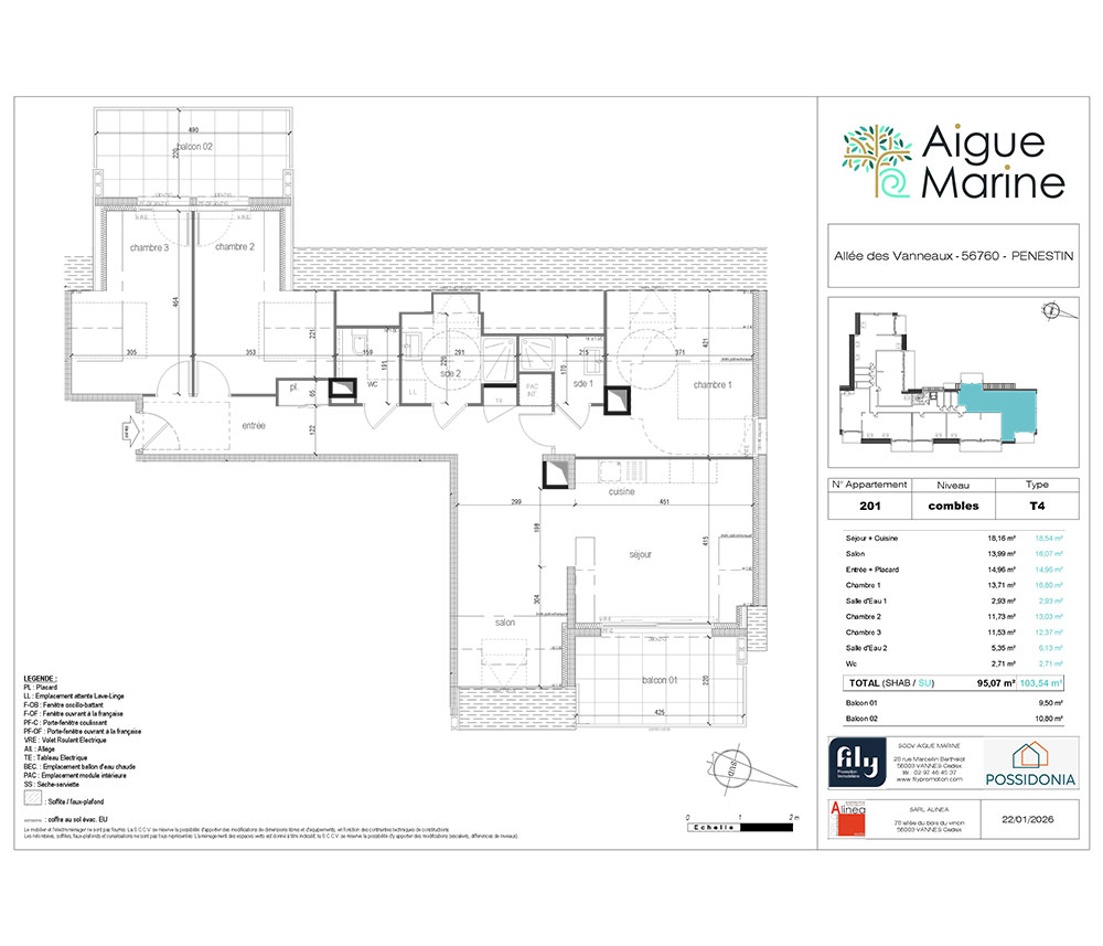 Vous souhaitez vous installer dans un cadre idyllique ou investir dans l’immobilier neuf en bord de mer en Bretagne ? Aigue-Marine est une chance unique d’acquérir un bien dans une résidence pensée pour vous offrir confort et bien-être tout au long de l’année. Nichée entre mer et nature, Aigue-Marine est idéalement située à Pénestin, au sud du Morbihan. Cette station balnéaire et son environnement naturel d’exception vous invitent à la découverte du célèbre site de la Mine d’Or avec ses falaises ocre ou encore du charmant port de Tréhiguier. Ici, les amateurs de nature, de randonnées et de plaisirs nautiques trouvent leur bonheur tout au long de l’année. Une atmosphère de vacances que vous pouvez prolonger en investissant dans un appartement neuf à Pénestin. Le programme Aigue Marine vous propose 28 appartements, du 2 pièces au 4 pièces, livrés clé en main, avec peintures faites et revêtements de sol posés. Que vous soyez à la recherche d’un appartement neuf à Pénestin pour y vivre à l’année ou pour profiter de la douceur des vacances, chaque logement a été conçu avec soin. Située dans un quartier résidentiel calme, à deux pas de la plage, cette résidence se distingue par ses lignes architecturales modernes et élégantes qui respectent le charme breton. Vous souhaitez en savoir plus sur ce programme immobilier dans le Morbihan ? Contactez dès maintenant l’équipe Fily Promotion afin d’être accompagné dans votre projet d’achat d’appartement à Pénestin, que ce soit pour une résidence principale ou un investissement locatif.