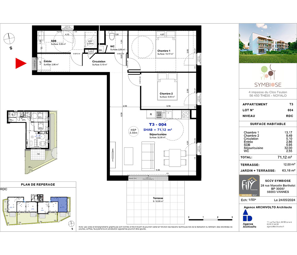 Vente appartement neuf T3 Theix 71.12 m² - rez-de-chaussée