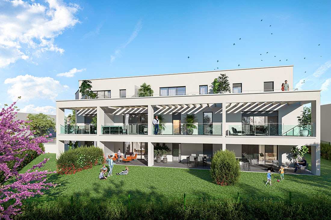 Chaque appartement a été conçu pour offrir de beaux volumes lumineux, des espaces extérieurs privatifs (balcons, terrasses ou jardins), et des prestations haut de gamme : menuiseries aluminium, volets roulants électriques, faïences toute hauteur et stationnement en sous-sol.